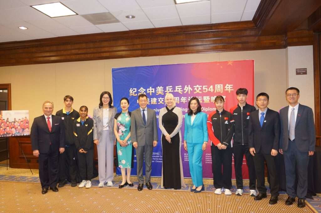 作为主办方代表,美国乒乓球协会首席执行官、国际乒联副主席沈伟妮女士首先致欢迎辞。她指出:“乒乓外交不仅是历史记忆,更具有现实意义。54年前,—颗小小乒乓球证明了人与人面对面的沟通与尊重可以打开合作之门。今天纪念这—历史,就是要继续用体育搭建桥梁,让竞争与合作并行不悖,让下—代认识到联系与理解的力量。”