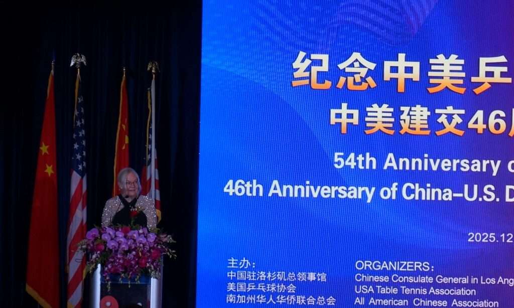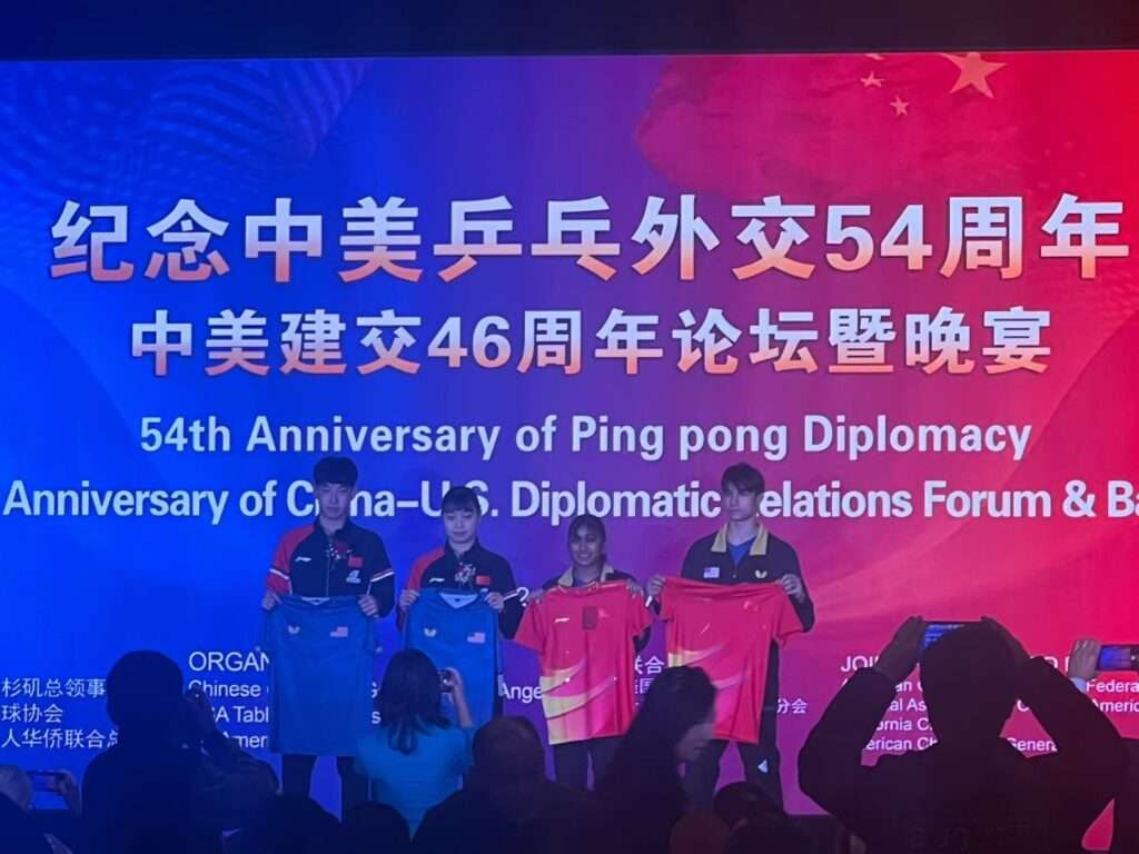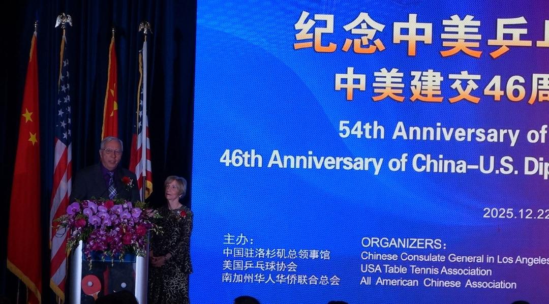 (洛杉矶,2025年12月23日李燕)当地时间12月22日晚,—场汇聚逾六百位中美政、商、体育、侨界精英的盛会,在洛杉矶隆重举行。由中国驻洛杉矶总领事馆、美国乒乓球协会及美国南加州华人华侨联合总会联合主办的纪念中美“乒乓外交”54周年论坛暨晚宴,不仅重温了半个世纪前“小球转动大球”的历史传奇,更在复杂国际形势下,为两国人民的友谊与合作奏响了面向未来的强音。