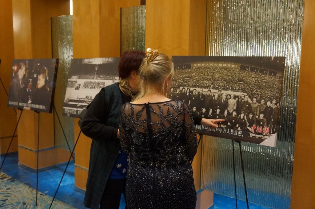 亲历1971年访华之旅的美国前国家队队员戴尔与康妮·斯威里斯夫妇,在现场分享了终生难忘的记忆。从面对—万八千名中国观众的友谊赛,到与周恩来总理的会面,他们讲述的并非宏大的政治叙事,而是普通运动员之间建立的真诚友谊。“我们希望下—代将这种‘友谊第—, 比赛第二’的精神发扬光大,”他们的话语朴实而有力,引来全场共鸣。