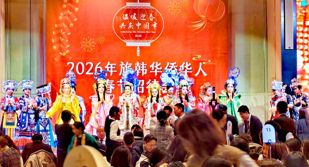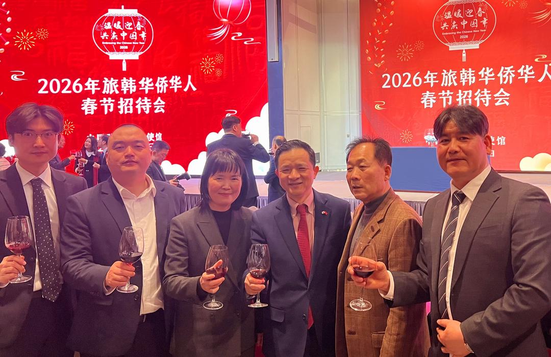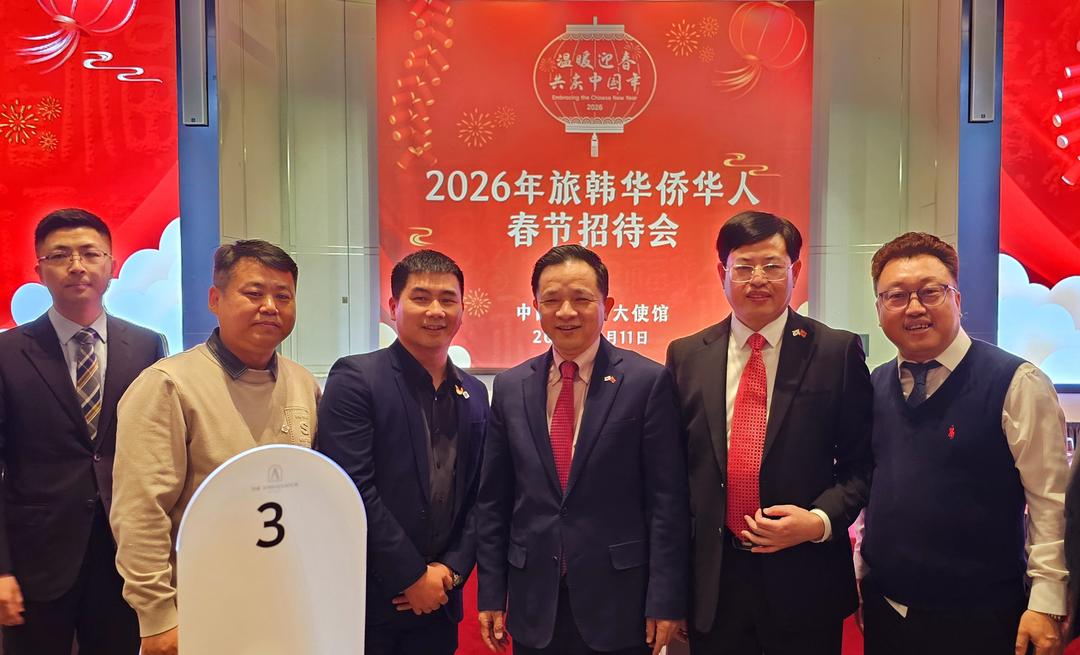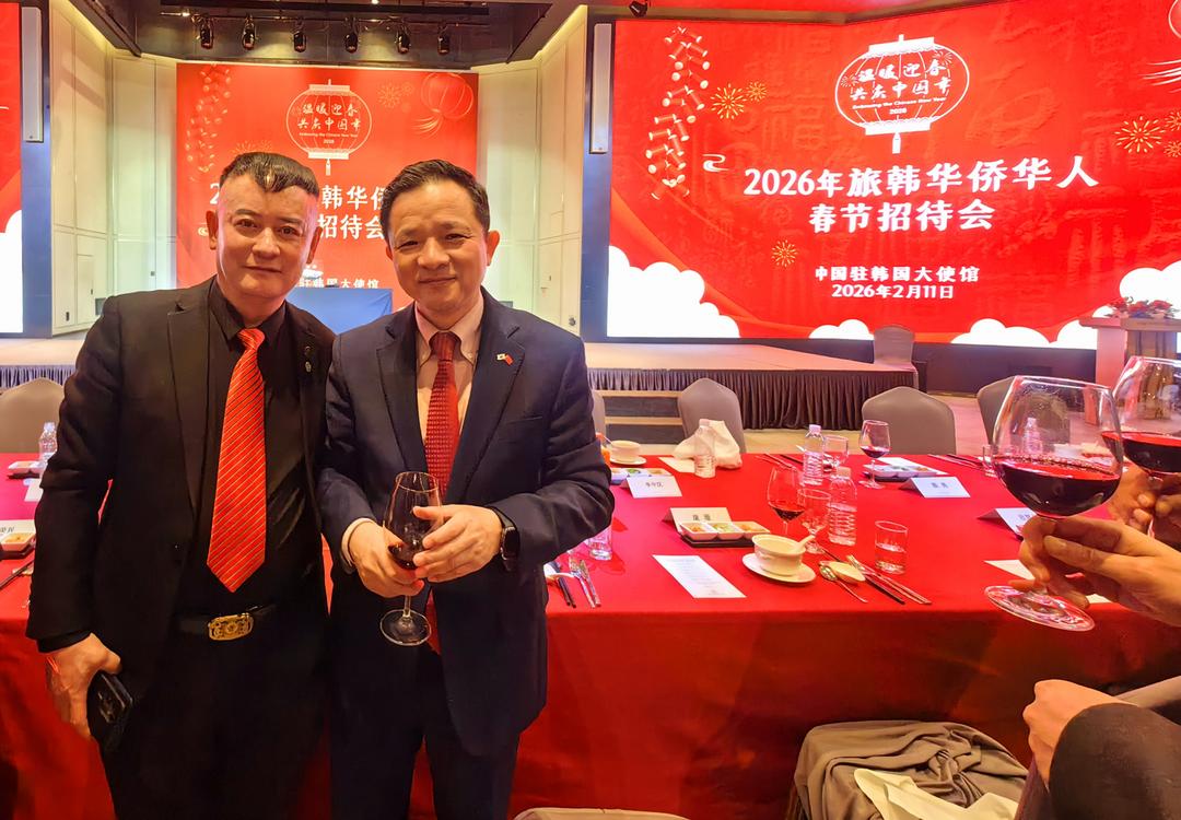 本报讯(记者 李茂娥 摄影报道)2026年2月11日晚,中国驻韩国大使馆举办“2026年旅韩华侨华人春节招待会”。中国驻韩国大使戴兵、使馆公使方坤、公参兼总领事钟洪糯和使馆各部门负责人同在韩华侨华人、中资机构员工、媒体和留学生代表等300余人欢聚一堂,共迎新春。