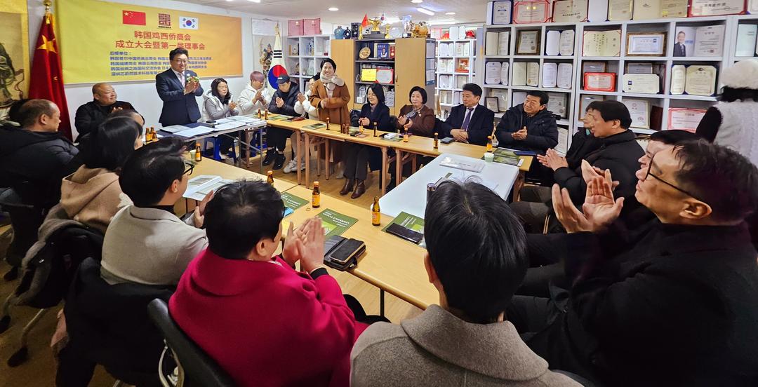 韩国鸡西侨商会在首尔举办神顶峰黑蜂蜜正式启动韩国代理商招募计划新闻发布会现场。