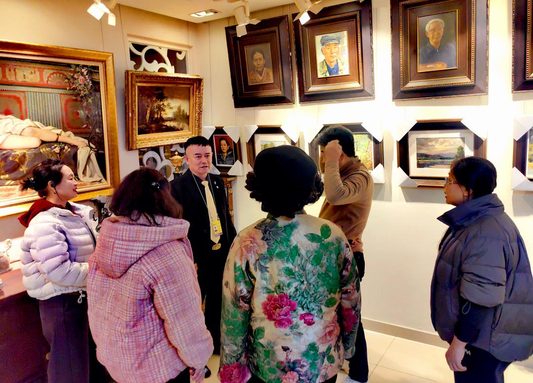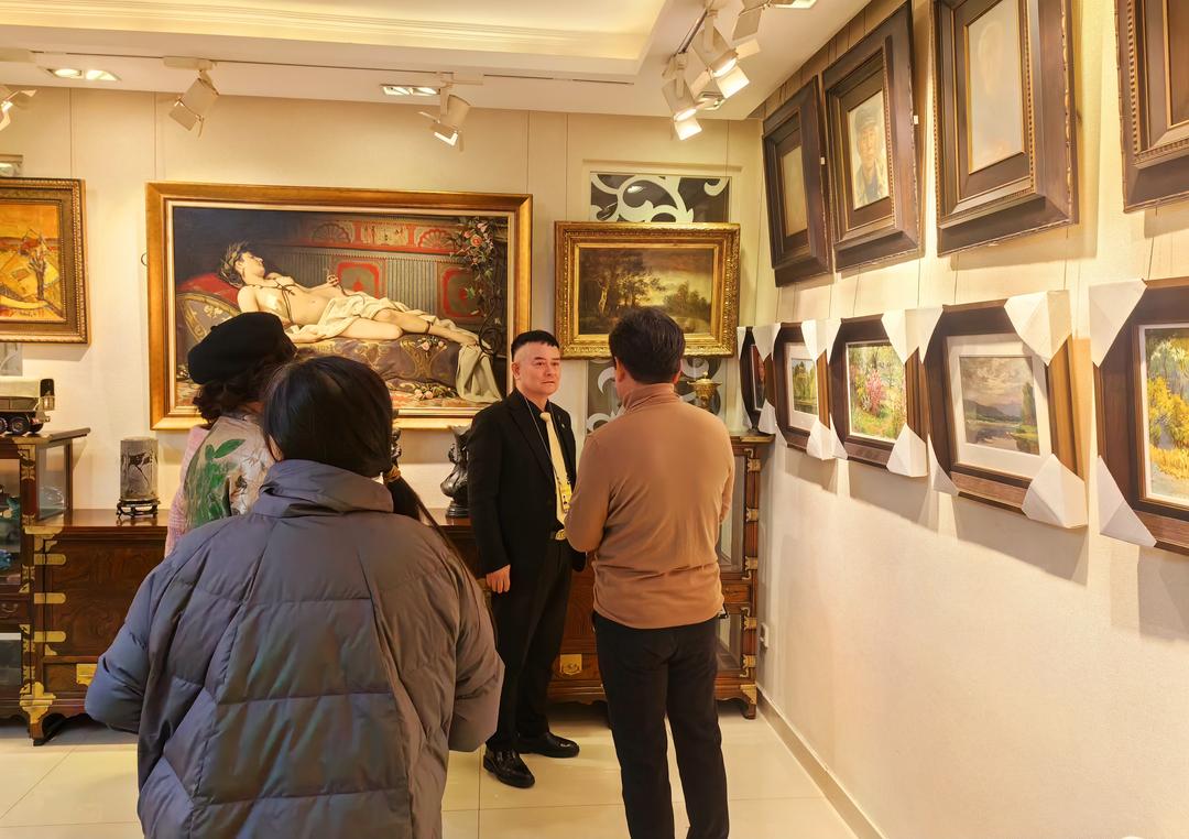 朴文彬(左三),1966年生于中国吉林延边,朝鲜族,资深艺术品收藏家、绘画爱好者。自21岁踏入艺术收藏领域,至今已深耕39年,现任北京豪雅得国际艺术会馆馆长、北京豪雅得文化艺术传播有限公司总经理、北京通州油画学会理事。