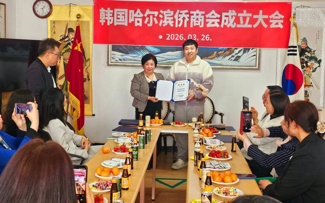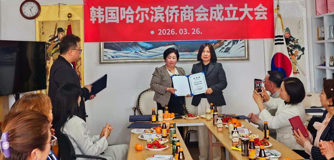 此次韩国哈尔滨侨商会的正式成立,不仅填补了在韩哈尔滨籍侨商专属社团的空白,进一步凝聚了旅韩哈尔滨侨胞的向心力,也为中韩两国地方经贸合作与民间友好往来增添了新的活力。未来,在会长高金凤的带领与荣誉会长曹明权的助力下,商会将充分发挥桥梁纽带作用,团结带领广大在韩哈尔滨籍侨商,抢抓发展机遇,拓展合作空间,既实现自身事业的蓬勃发展,也为家乡哈尔滨的经济社会建设、中韩两国的友好交流合作贡献侨商力量。