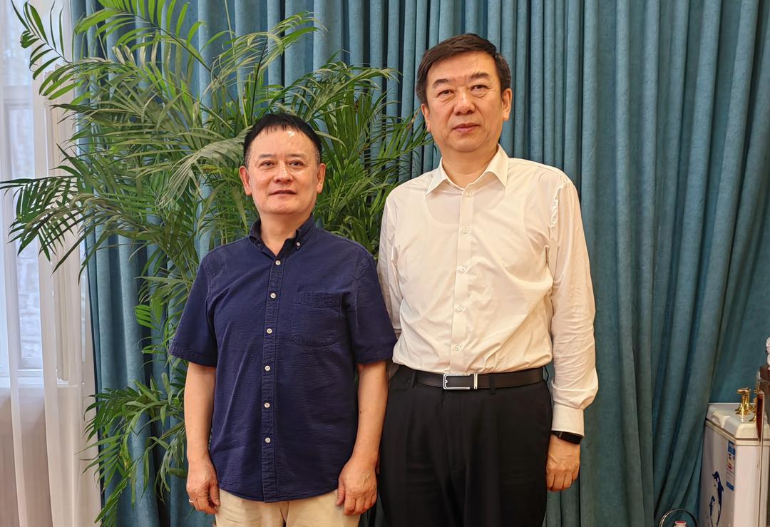 鸡西市委孙成坤书记(右)亲切接见来自韩国首尔中国侨民协会会长、韩中新闻记者协会会长兼韩国新华报社社长曹明权博士(左)后共同合影留念