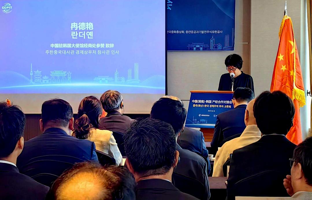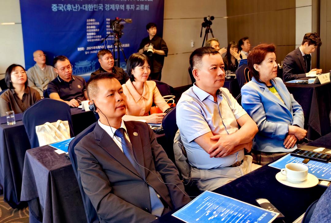 湖南省贸促会会长杨爱云对湖南省情况做了详细的推介,杨爱云在情况推介中指出,据湖南省商务厅统计,近五年湘韩贸易额年均增长22.3%,韩国已成为湖南第三大贸易伙伴。随着双方在新能源、数字经济、绿色转型领域合作的深化,预计2025年双边贸易额将突破100亿美元。