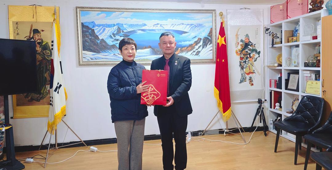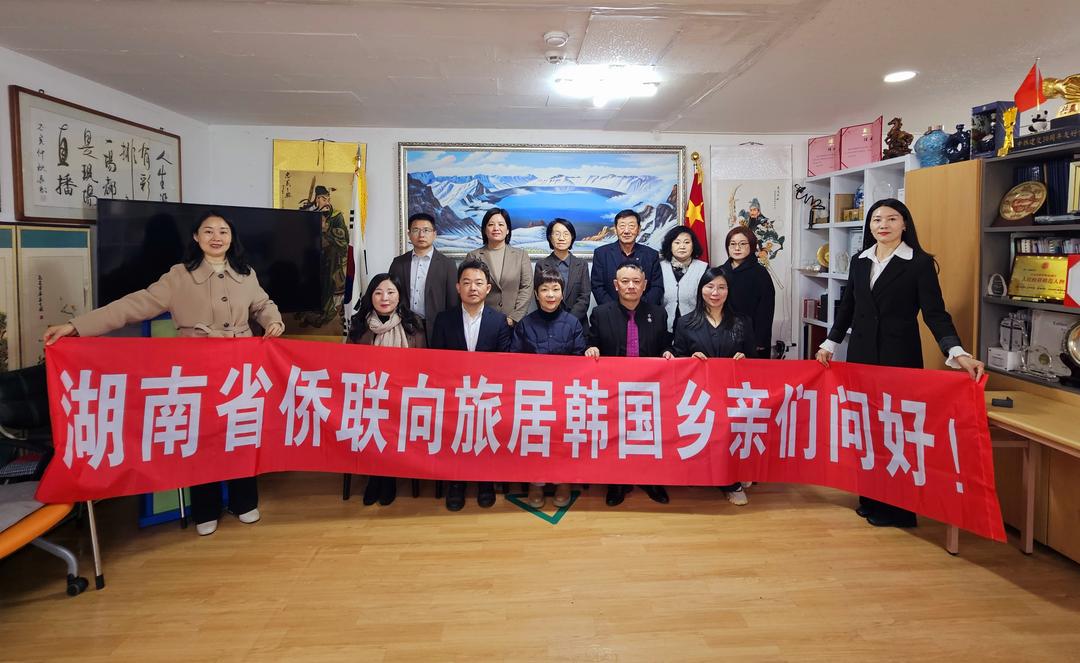 本报讯(记者 金明焕 李茂娥 摄影报道)2025年11月19日,湖南省侨联访问韩国代表团在韩国湖南商会会长李剑的陪同下,在首尔专程拜访了首尔中国侨民协会会长曹明权博士,并举行工作座谈。双方就进一步推动中国湖南省与韩国在商贸、文化等领域的友好往来与合作进行了深入交流。