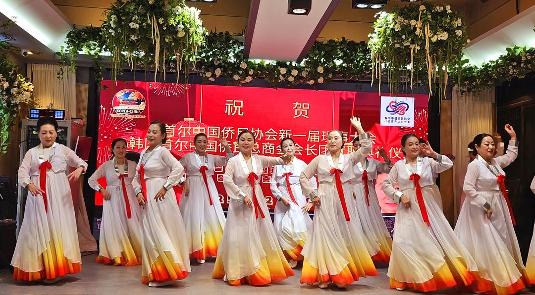 首尔中国侨民协会光辉艺术团为参加总商会庆典活动的嘉宾表演舞蹈节目