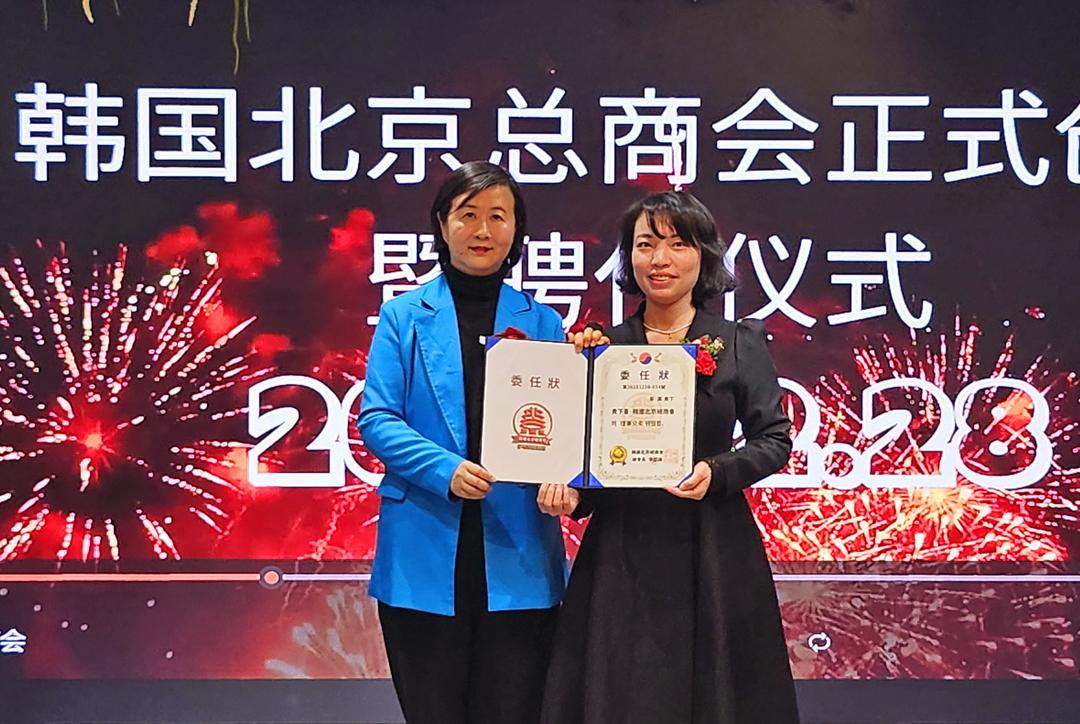 徐蓓蓓女士(右)被韩国北京总商会聘任为顾问