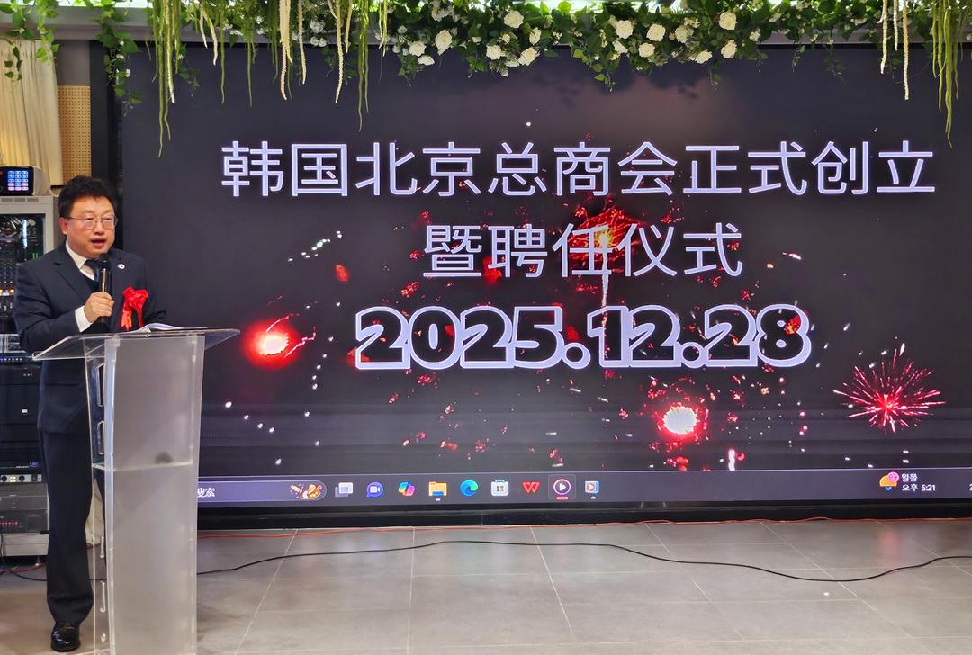 本报讯(记者 李茂娥 摄影报道)2025年12月29日,韩国北京总商会在首尔延边婚礼大厦正式宣告成立。这是首个专注于连接韩国与中国首都北京经贸往来的侨商组织,标志着在韩北京籍侨商有了专属的交流合作平台。