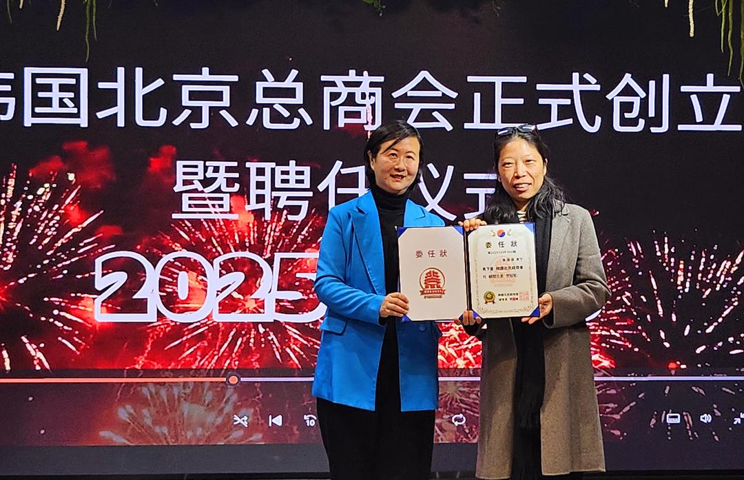 韩国新华报社总编辑李茂娥(右)被韩国北京总商会聘任为宣传部长