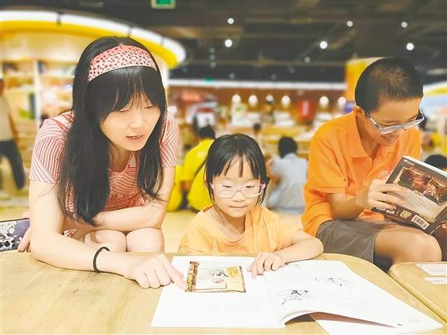 家长带着孩子来阅读,在愉悦的氛围中学习新知识。郭永乐 摄